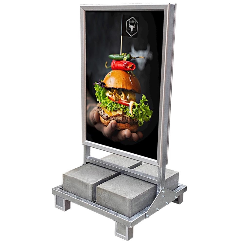 Vi har fundet Heavy Outdoor Betonstander hos displaylager i kategorien . Heavy Outdoor Sign ConcreteStormsikkert skilt i kraftig udførelse i rustfrit, sølv-galvaniseret stål og fod med betonmoduler. Skiltets 2 betonmoduler gør at det står fast selv i meget stærk vind og vejr. De fire ben gør, at skiltet kan flyttes med en pa